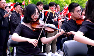 百年五四前夕,中國農業大學千余名師生校友齊聚東校區奧運場館前,高唱《我們都是追夢人》《我和我的祖國》《金色的希望》三首歌曲,以一場熱情、深情的青春快閃,向青春致敬,為祖國獻禮。